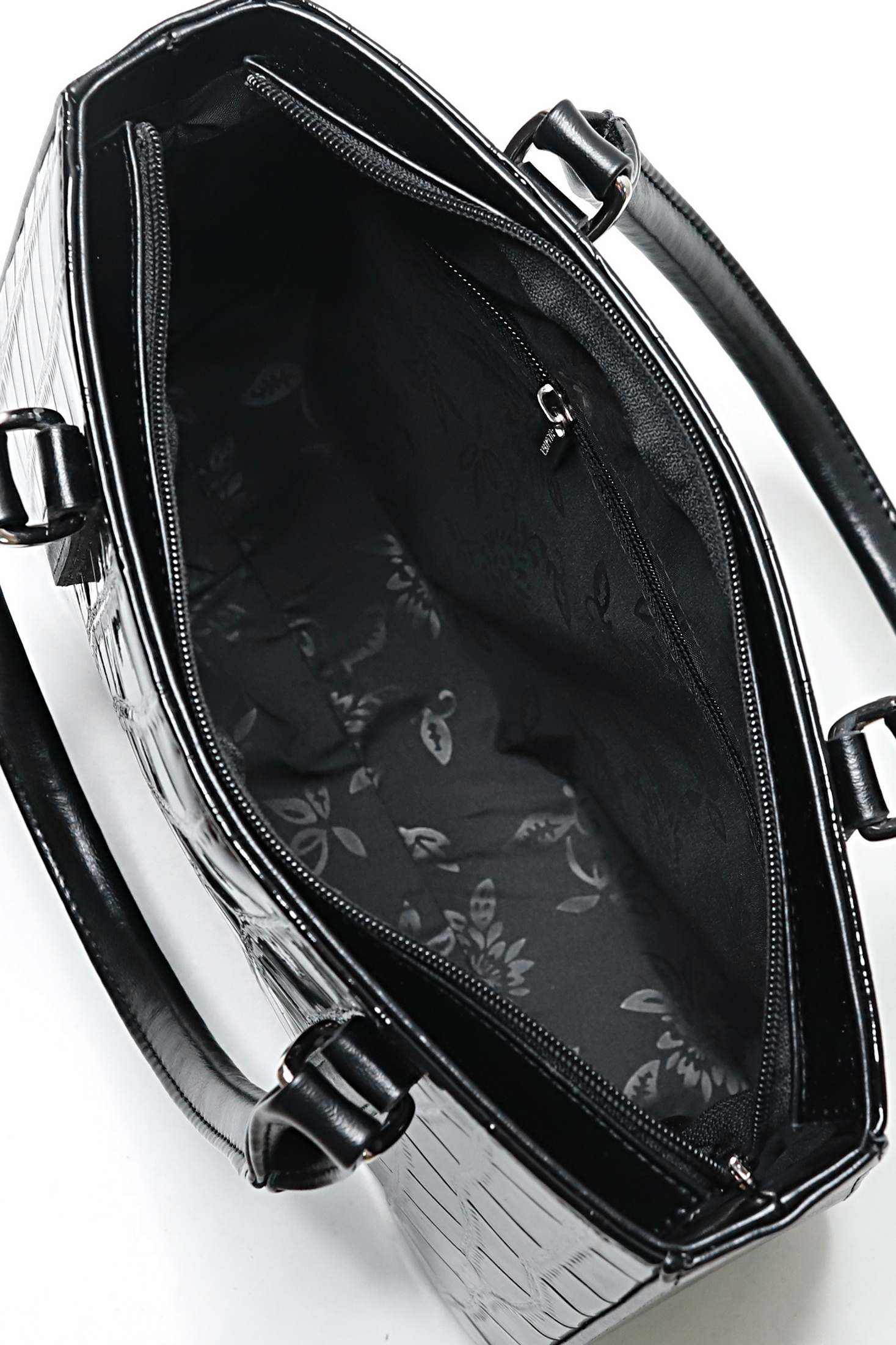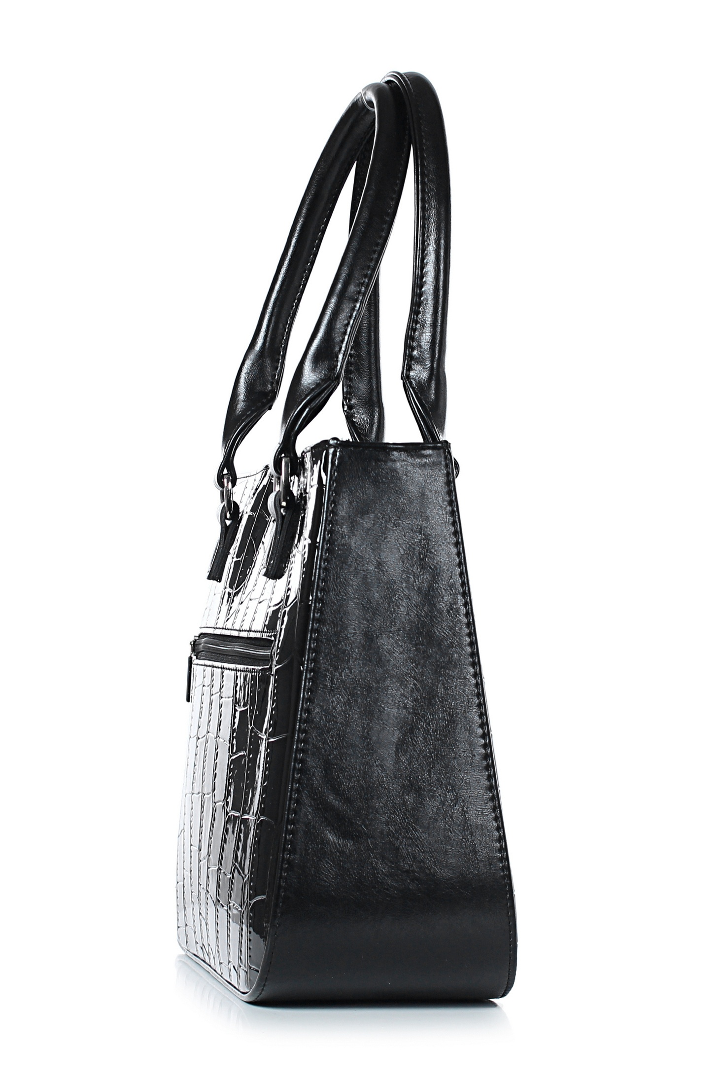 Сумка на одно отделение, закрывающееся на застежку-молнию, с двумя короткими ручками длиной 465+-10 мм, на задней стенке - карман, закрывающийся на застежку-молнию. Цвет фурнитуры - никель. Сумка на подкладке, с открытым карманом.