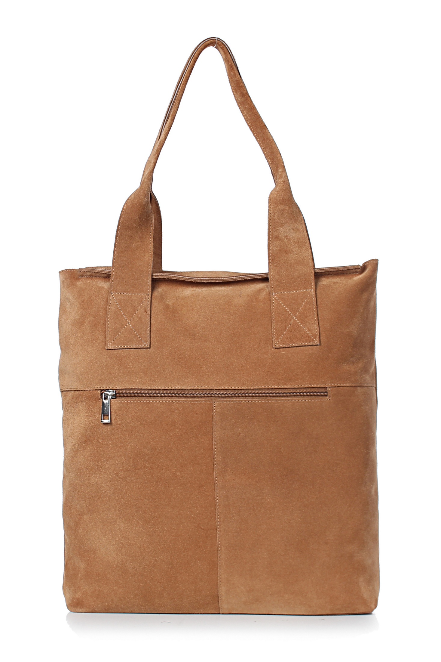 Сумка на одно отделение, закрывающееся на застежку-молнию, с двумя ручками длиной 665+-10 мм, на задней стенке карман, закрывающийся на застежку-молнию. Цвет фурнитуры - никель. Сумка частично на подкладке, с открытым карманом, с окантовкой кармана.