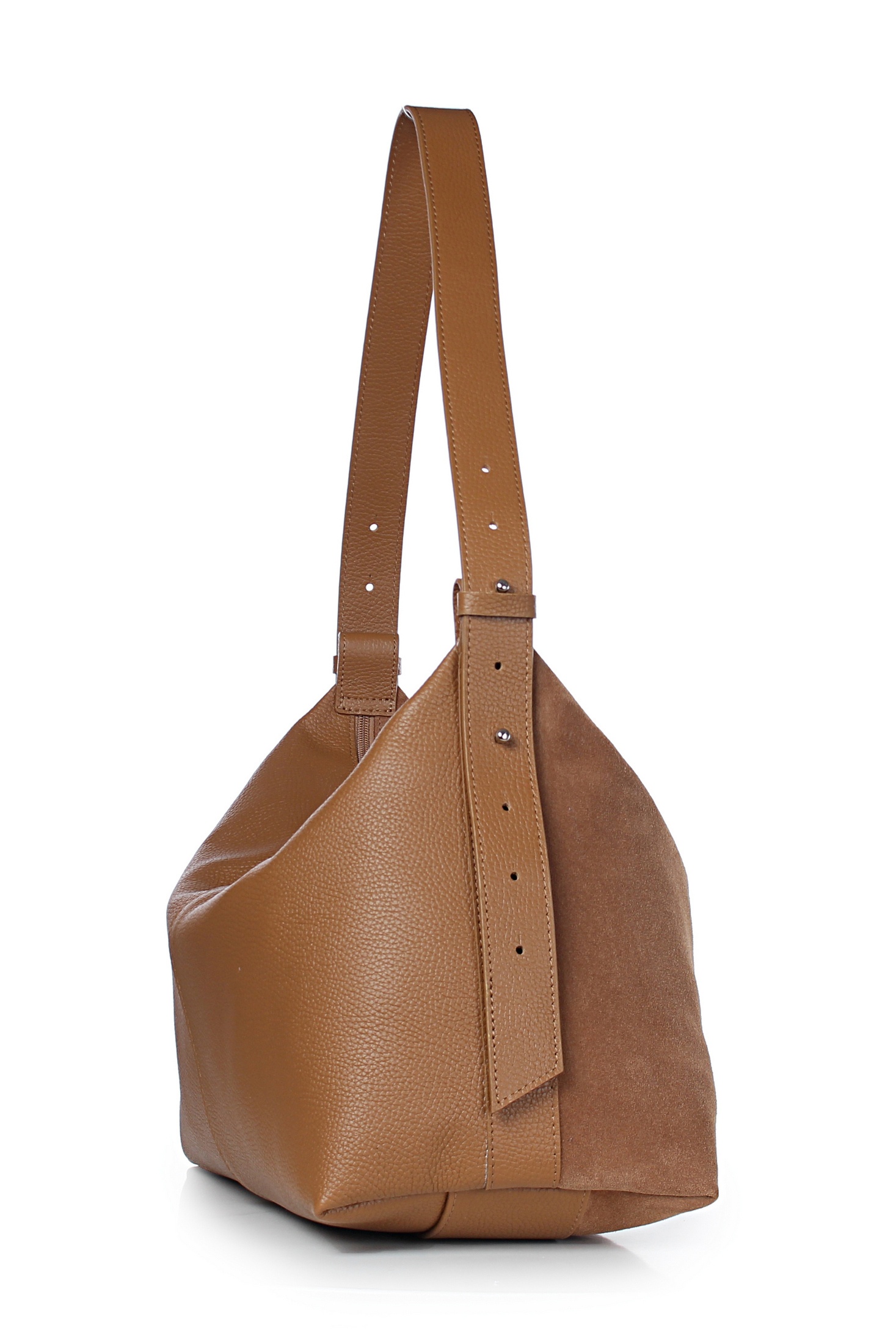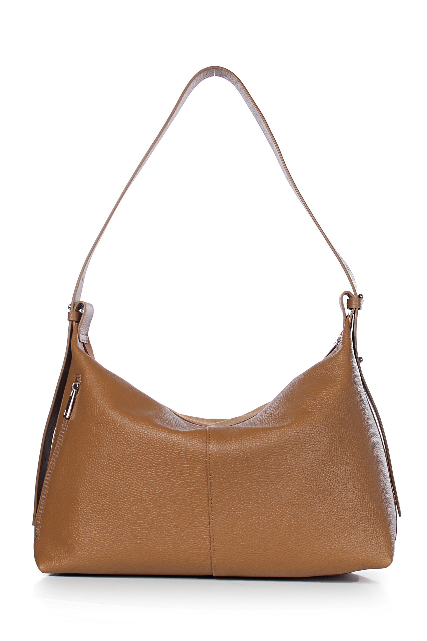 Сумка на одно отделение, закрывающееся на застежку-молнию, с карманом на задней стенке, закрывающимся на застежку-молнию, с двумя держателями ручки-ремня, со съемной регулирующейся ручкой-ремнем максимальной длины 1060+-10 мм. Цвет фурнитуры - никель. Сумка на подкладке, с открытым накладным карманом с украшением, с карманом с накладкой, закрывающимся на застежку-молнию.