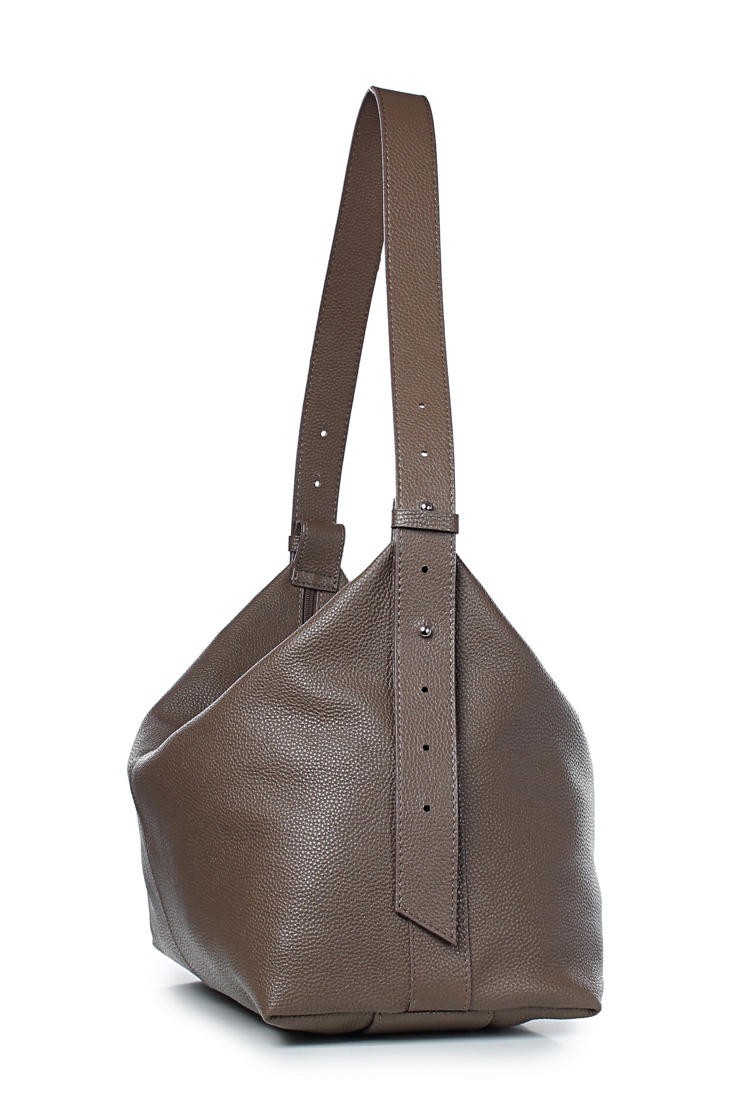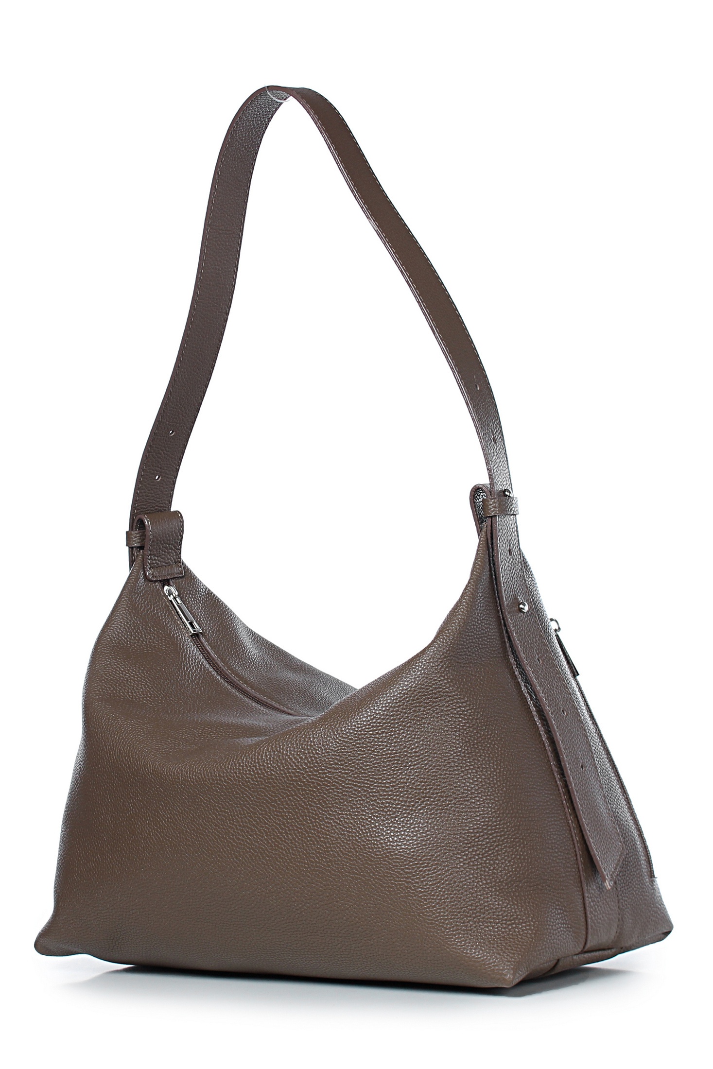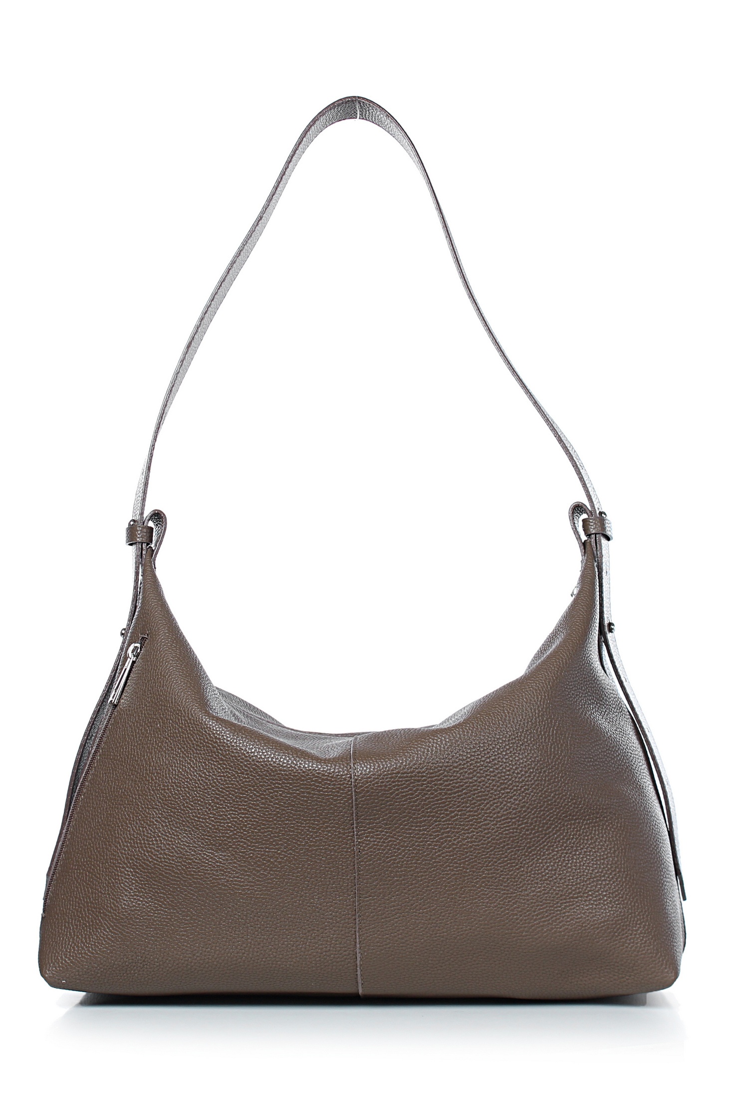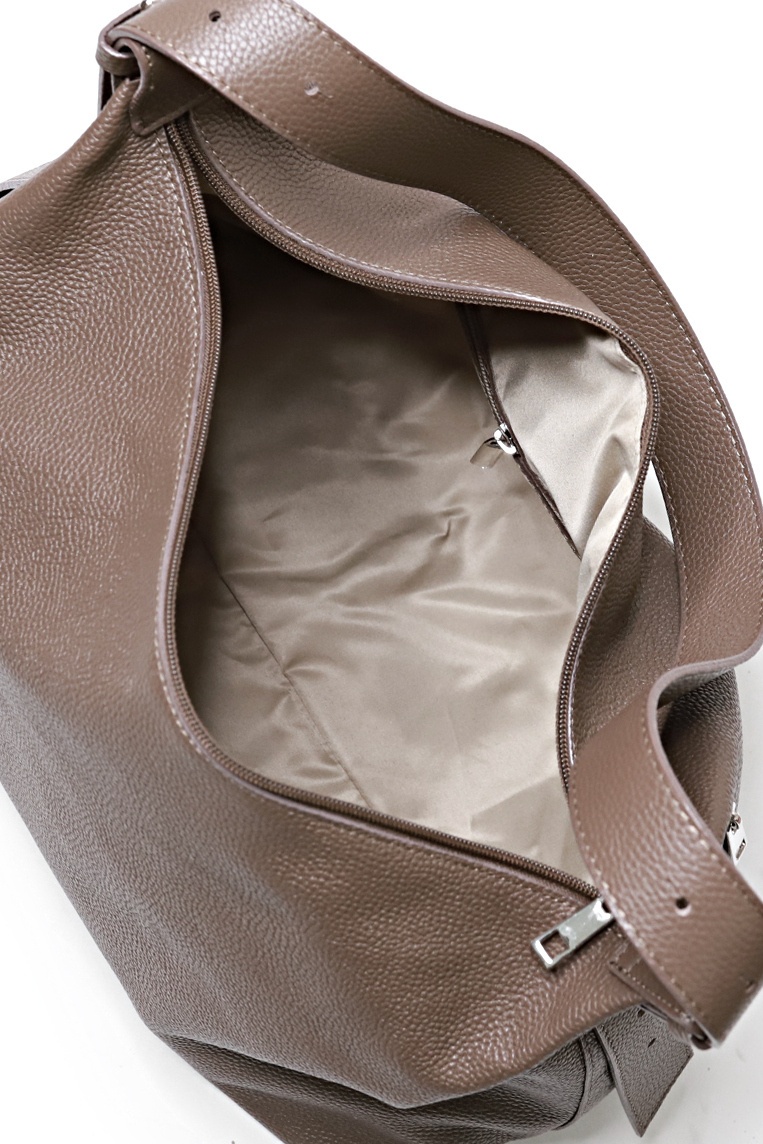 Сумка на одно отделение, закрывающееся на застежку-молнию, с карманом на задней стенке, закрывающимся на застежку-молнию, с двумя держателями ручки-ремня, со съемной регулирующейся ручкой-ремнем максимальной длины 1060+-10 мм. Цвет фурнитуры - никель. Сумка на подкладке, с открытым накладным карманом с украшением, с карманом с накладкой, закрывающимся на застежку-молнию.