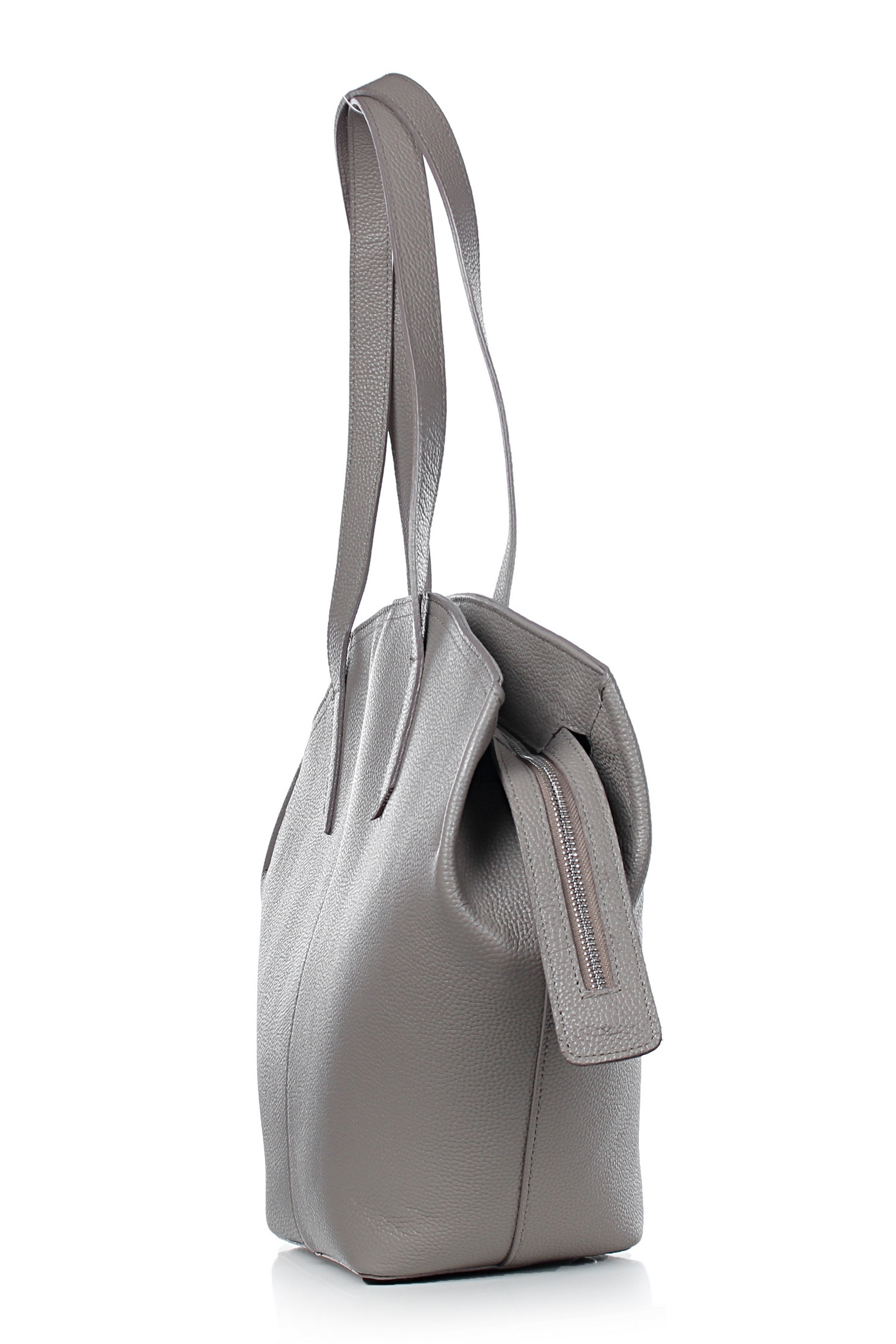 Сумка на одно отделение, закрывающееся на застежку-молнию, с двумя короткими ручками длиной 675+-10 мм, с накладкой на передней стенке, с пуклями на дне. Цвет фурнитуры - никель. Сумка на подкладке, с открытым карманом, с подвесным карманом, закрывающимся на застежку-молнию, с футляром для пластиковых карт.