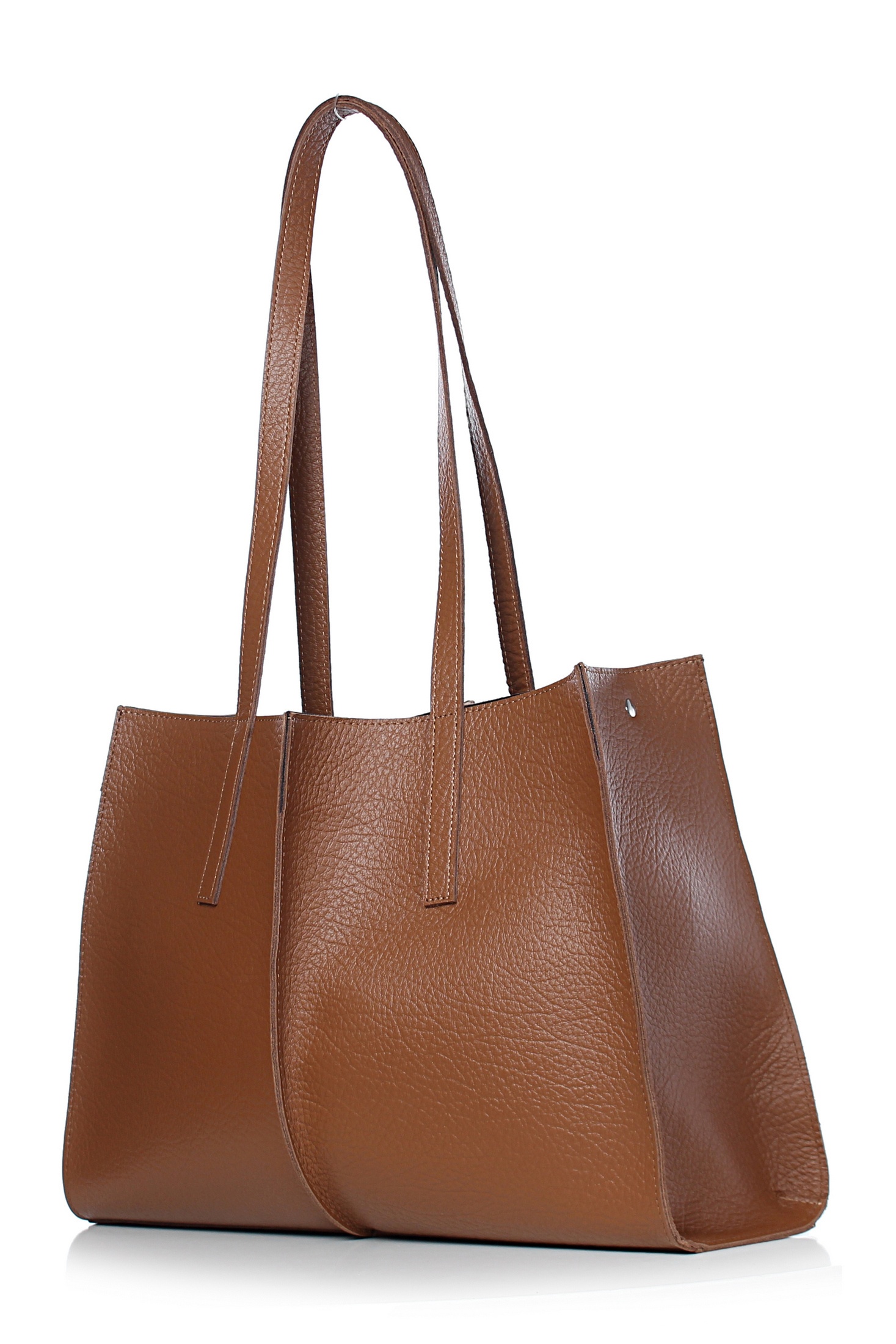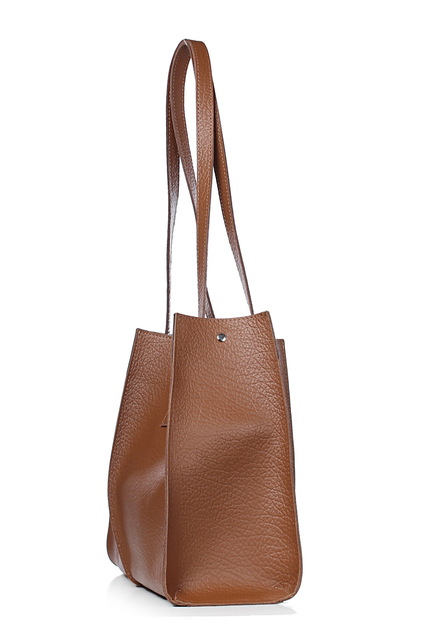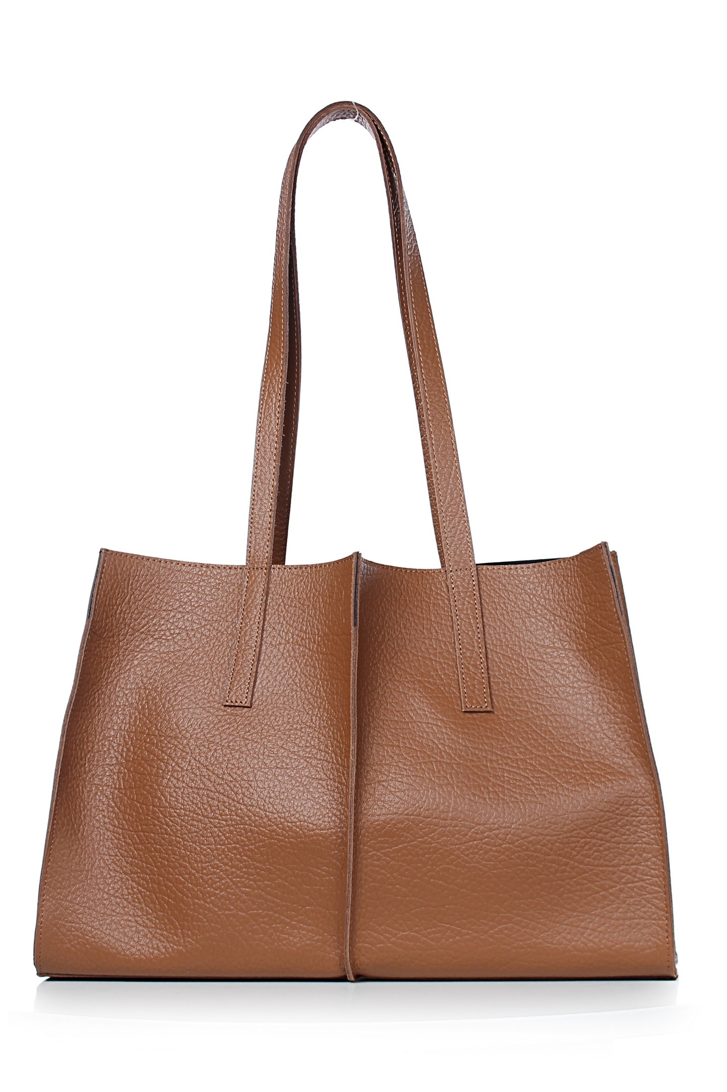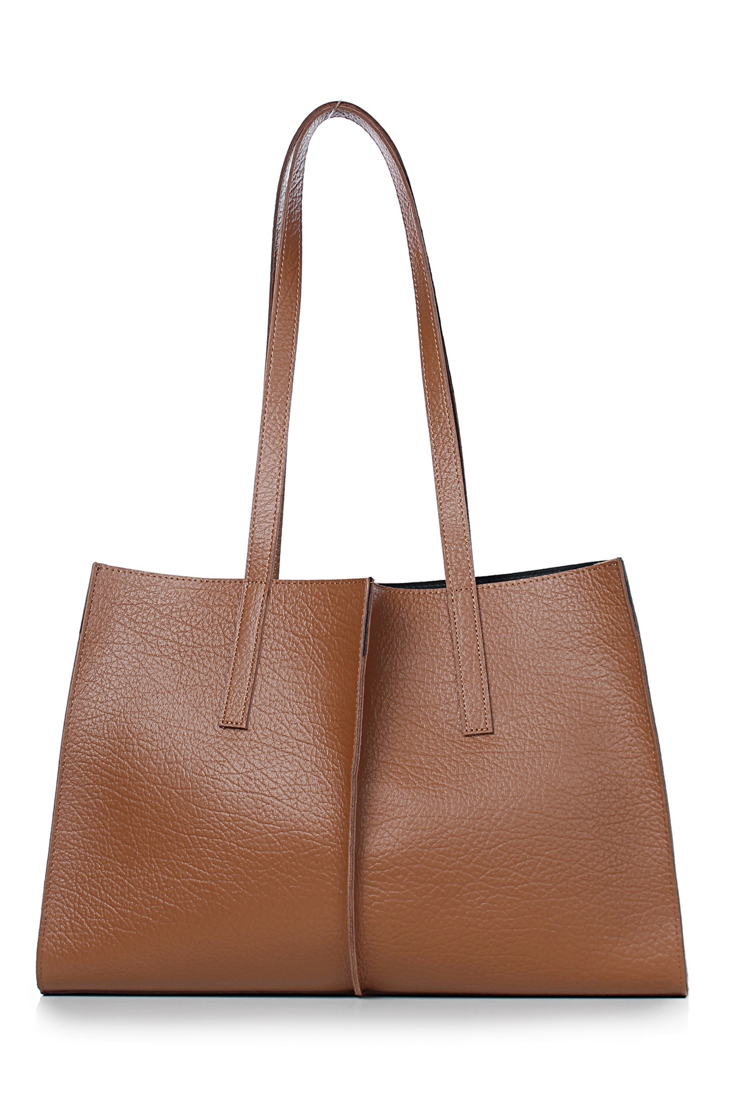 Сумка на одно отделение, с двумя короткими ручками длиной 720+-10 мм. Цвет фурнитуры - никель. Сумка частично на подкладке, со съемным вкладышем, закрывающимся на застежку-молнию, с футляром для пластиковых карт, с окантовкой внутренних швов.