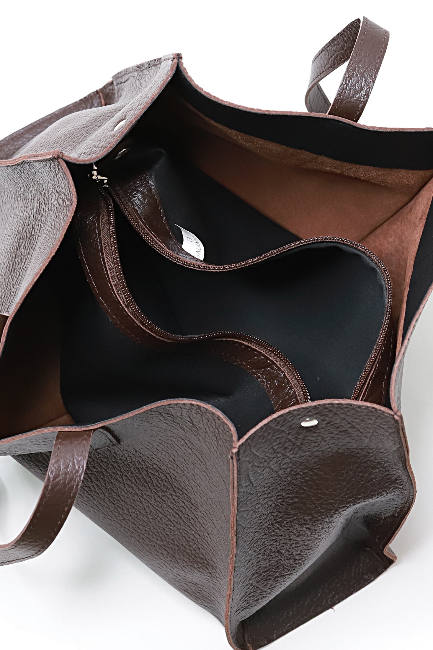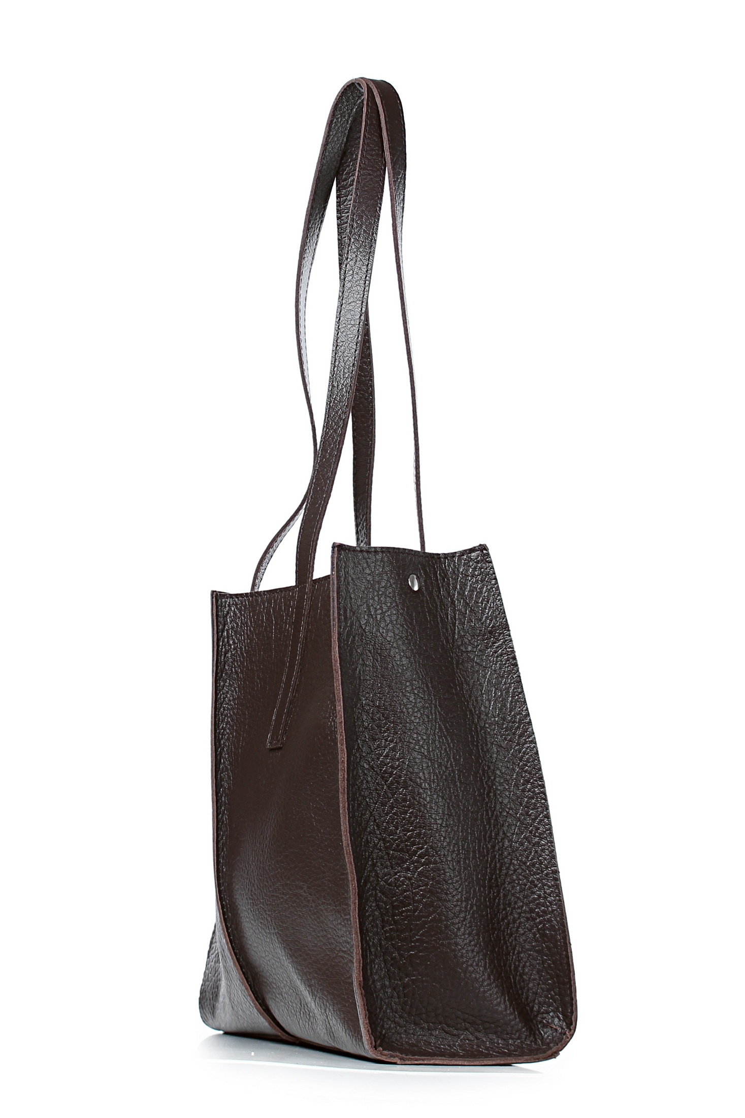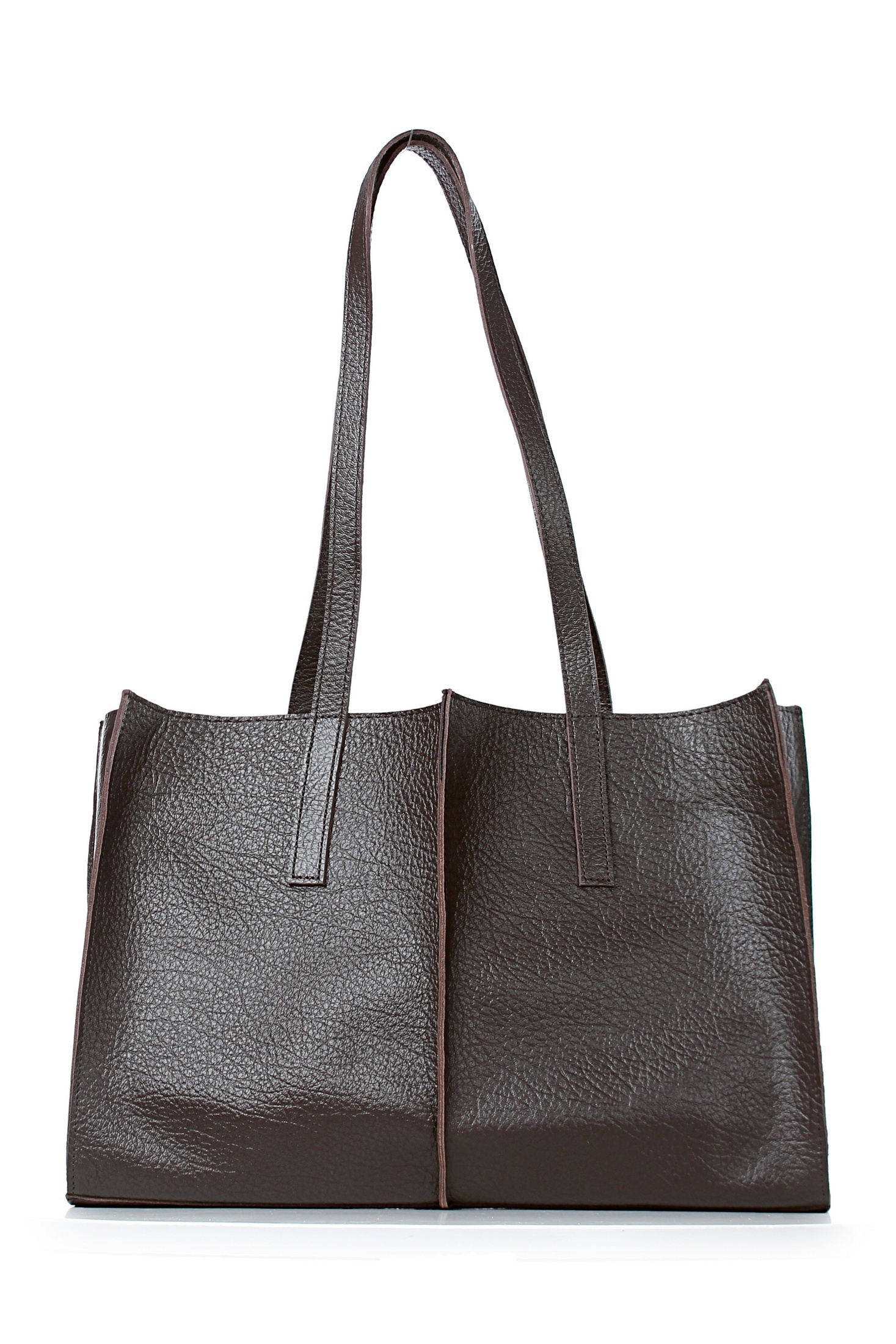 Сумка на одно отделение, с двумя короткими ручками длиной 720+-10 мм. Цвет фурнитуры - никель. Сумка частично на подкладке, со съемным вкладышем, закрывающимся на застежку-молнию, с футляром для пластиковых карт, с окантовкой внутренних швов.