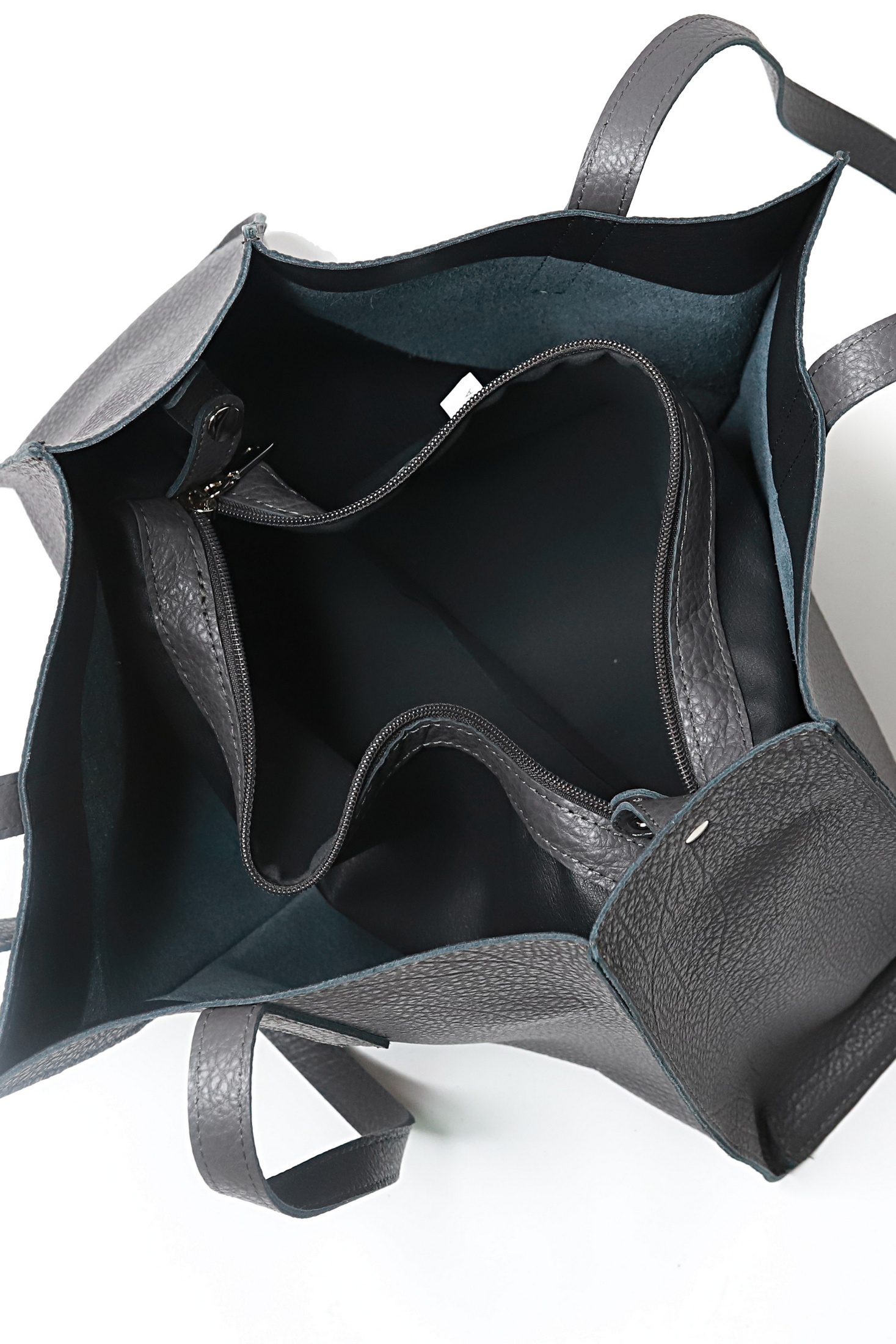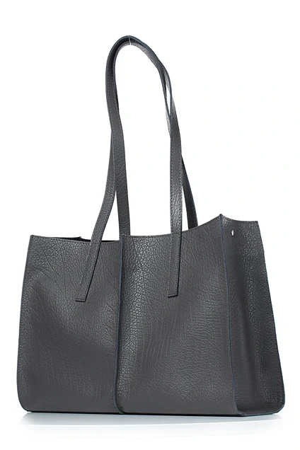 Сумка на одно отделение, с двумя короткими ручками длиной 720+-10 мм. Цвет фурнитуры - никель. Сумка частично на подкладке, со съемным вкладышем, закрывающимся на застежку-молнию, с футляром для пластиковых карт, с окантовкой внутренних швов.