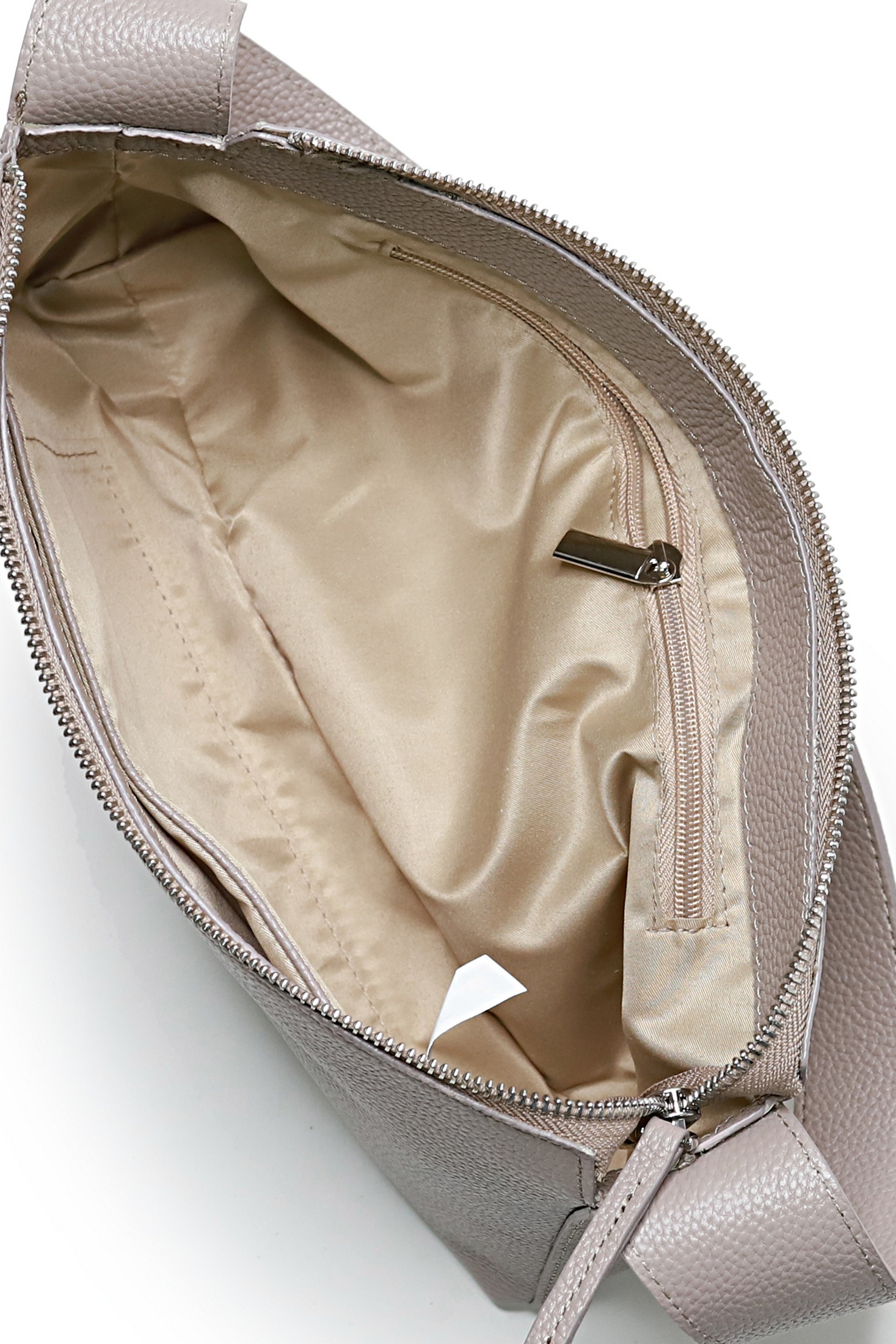 Сумка на одно отделение, закрывающееся на застежку-молнию, с украшением на движке, с одной короткой ручкой длиной 655+-10 мм. Цвет фурнитуры - никель.