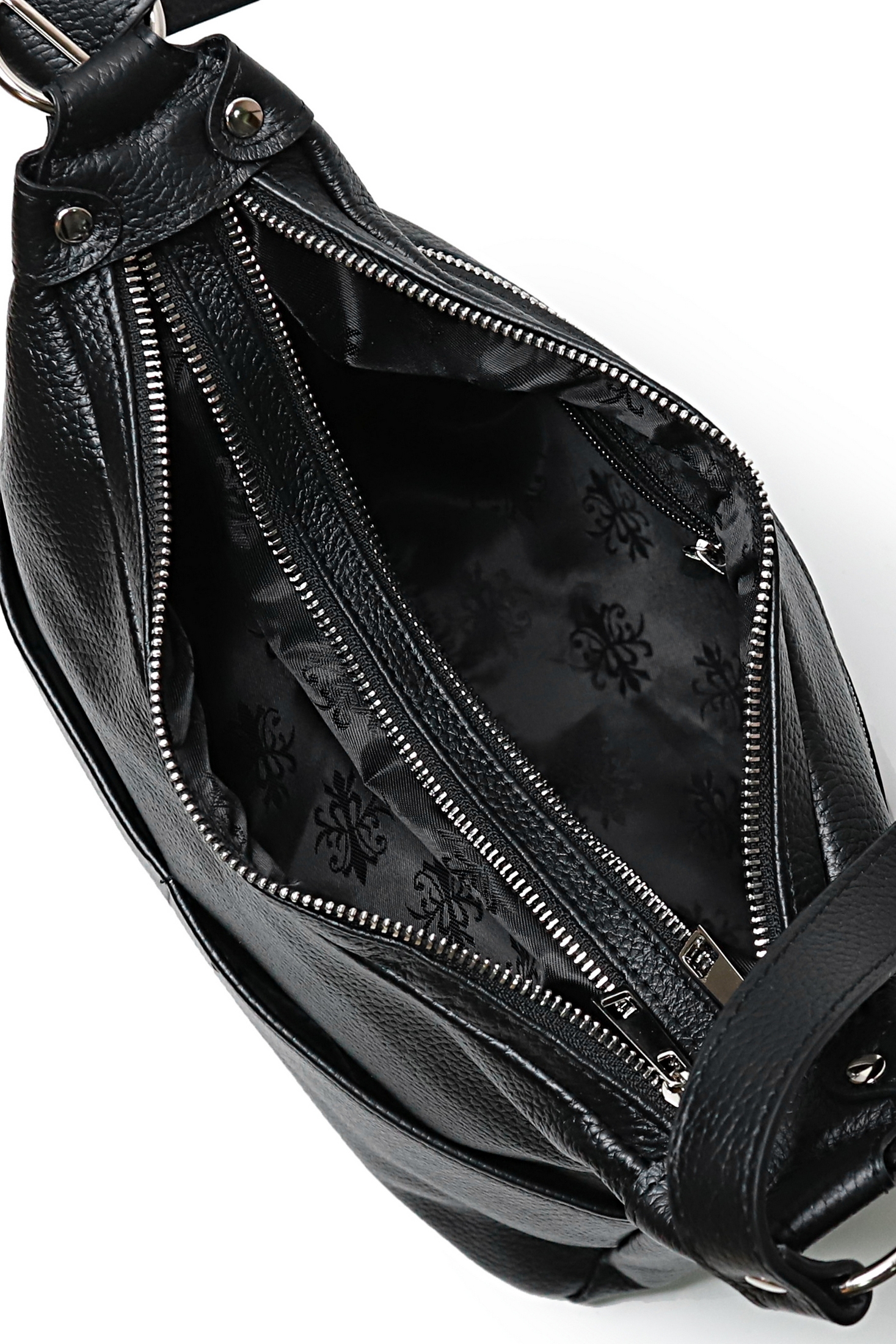 Сумка на два отделения, закрывающиеся на застежку-молнию, с несъемной регулирующейся ручкой-ремнем максимальной длины 1090+-10мм, с боковыми держателями, на передней стенке два открытых кармана, на задней стенке карман, закрывающийся на застежку-молнию. Цвет фурнитуры-никель.