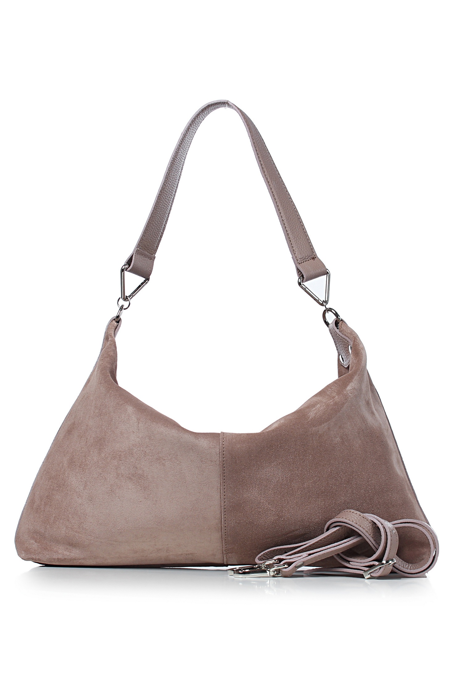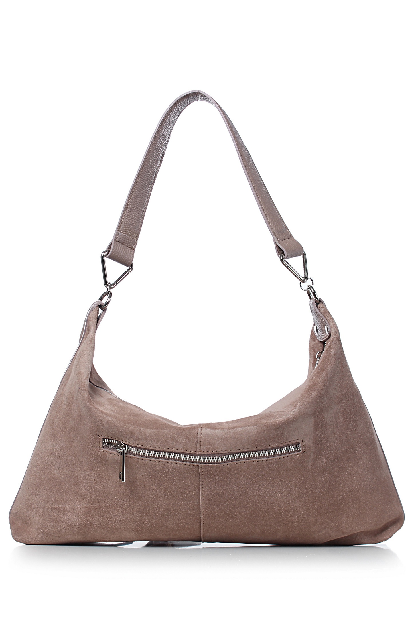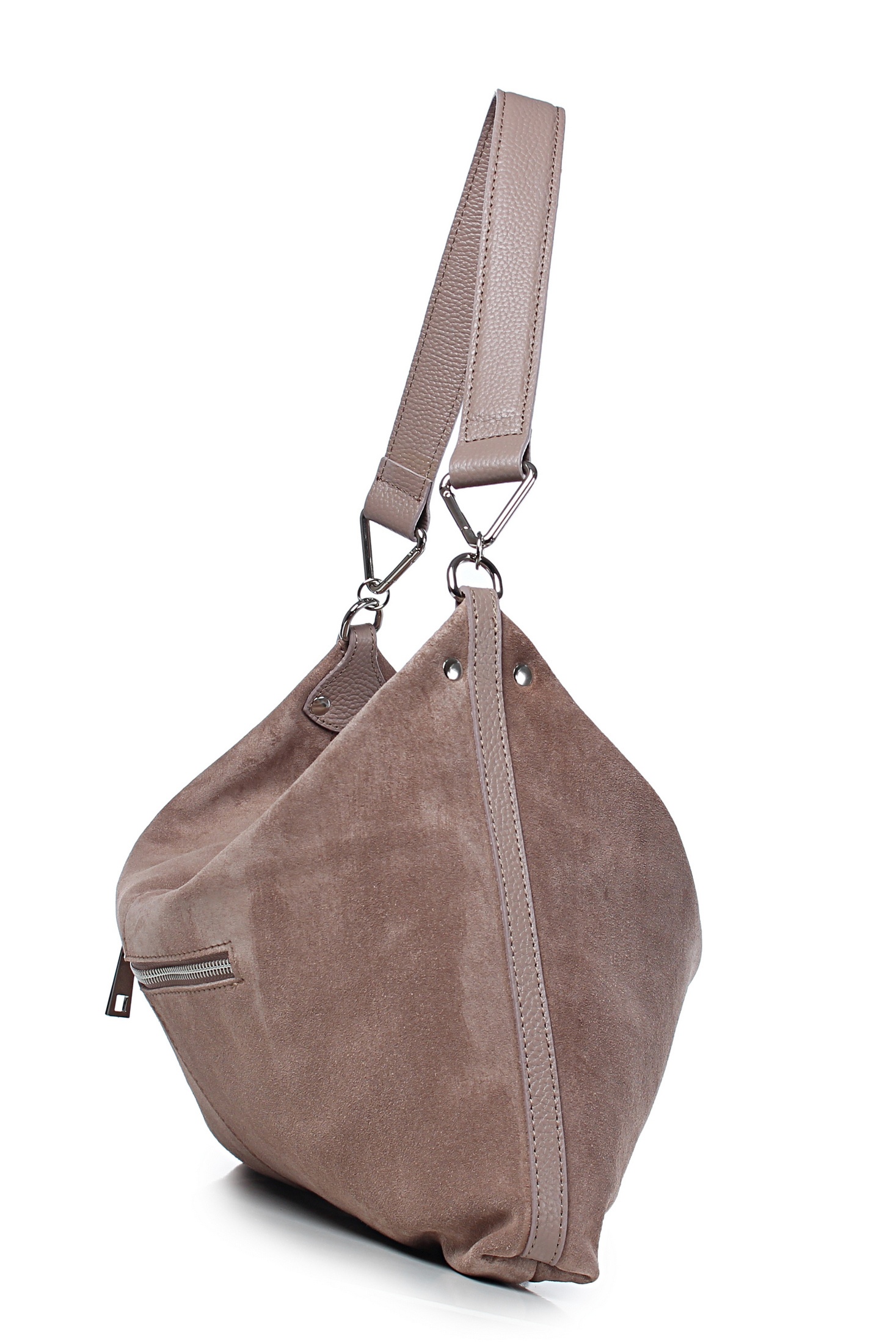 Сумка на одно отделение, закрывающееся на застежку-молнию, с карманом на задней стенке, закрывающимся на застежку-молнию, с двумя боковыми ручкодержателями, с одной короткой ручкой длиной 410+-10 мм, со съемной регулирующейся ручкой-ремнем максимальной длины 1245+-10 мм. Цвет фурнитуры - никель. Сумка на подкладке, с открытым накладным карманом с украшением, с карманом-перегородкой, закрывающимся на застежку-молнию и соединенным с задней стенкой замком-магниткой.