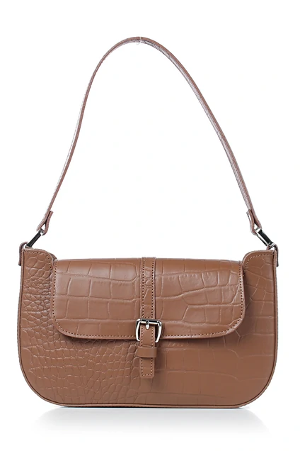 Эта стильная сумка выполнена в коричневом цвете с текстурой под крокодиловую кожу. Модель обладает элегантным клапаном на магнитном замке, украшенным декоративным элементом, что придает аксессуару шик и утонченность. Сумка оснащена одной ручкой длиной 510 мм, которая крепится к боковым держателям, добавляя практичность и долговечность. Фурнитура цвета никель дополняет дизайн, создавая гармоничный вид. Внутри сумки находится подкладка и подвесной карман на молнии, что делает её вместительной и функциональной. Эта сумка станет идеальным дополнением к любому гардеробу.