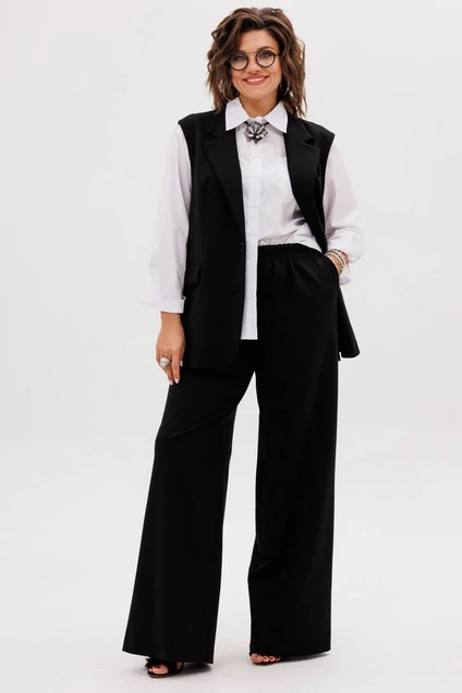 На модели рубашка 1412.1, трикотажные брюки палаццо 1425, юбка 1420, брюки 518.1, 1702 и 1743, легинсы 1436.
