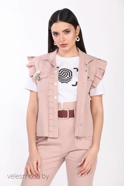 Жилет с отрезным бочком, вдоль которого вставлена декоративная деталь с частыми односторонними складками, проходящая через пройму