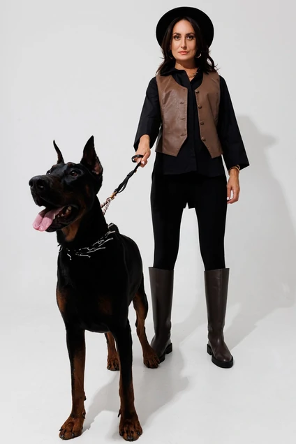Жилет из эко-кожи на пике популярности в этом сезоне. Его можно надеть на рубашку, на свитер, на шифоновое платье. Если у вас все есть, но вы хотите "освежить свой гардероб", то эта вещь для вас! Жилет прилегающего силуэта. Застежка на петли-пуговицы. По спинке выполнен декоративный фигурный вырез внизу.