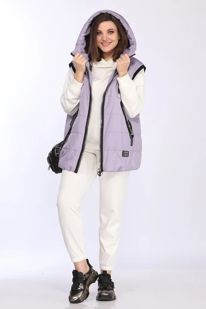 Модный жилет свободного силуэта с капюшоном на стойке из курточной ткани, уникальный бельгийский утеплитель «ISOSOFT» 100 г. на метр кв.,на ветрозащитной мембранной подкладке «Barrier». По полочкам прорезные карманы. Низ жилета на регулируемой кулисе. Застежка декор. молния.