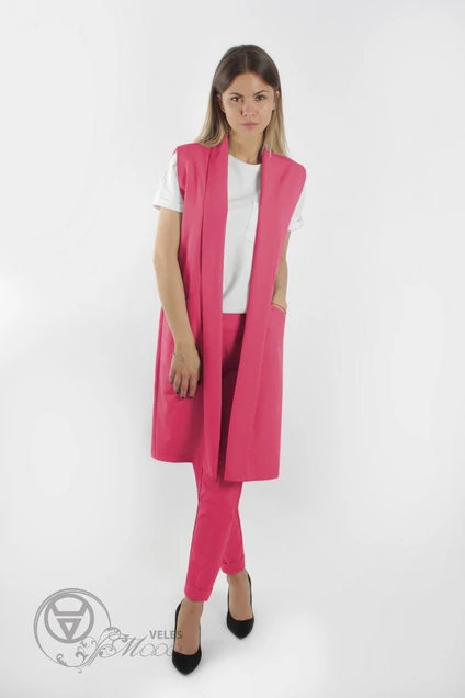Жилет свободного прямого кроя с большими внутренними карманами по переду.Без застёжки. Ширина спины: 46р-48см 48р-50см 50р- 52см 52р- 54см 54р-56 см 56р-58см Длина 93- 98 см.