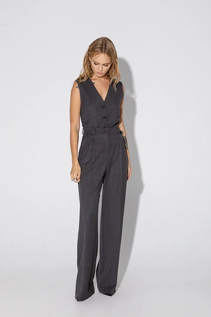 Жилет полуприлегающего силуэта из текстильной ткани в клетку. Детали: жилет полуприлегающего силуэта, фигурный низ, талиевые вытачки, застежка на петли и пуговицы, функциональные карманы, на подкладке.
