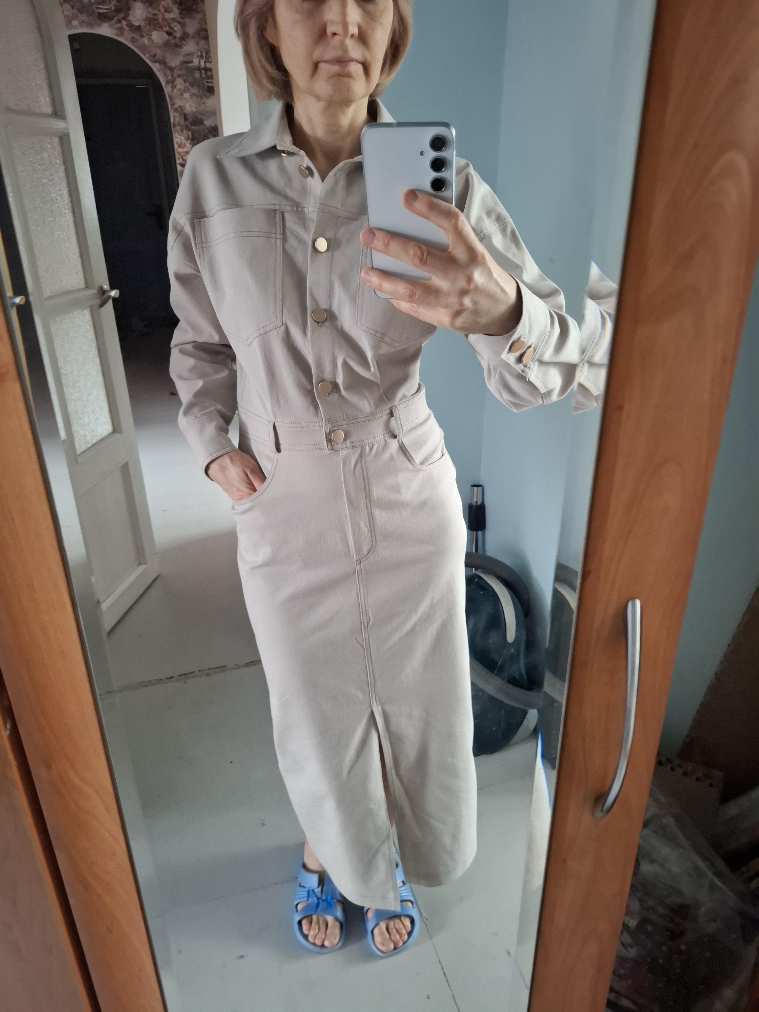 Очень понравилось платье! ОБ - 116, я взяла 52 размер и сидит великолепно! Смотрится нарядно, такой себе немного спортивный шик! Большое спасибо магазину за такую возможность!